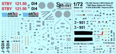 Syhart decals - 1/72 - F/A-18C Hornet J-5014 "AIR14" Payerne + p-51D + D-3801 decals