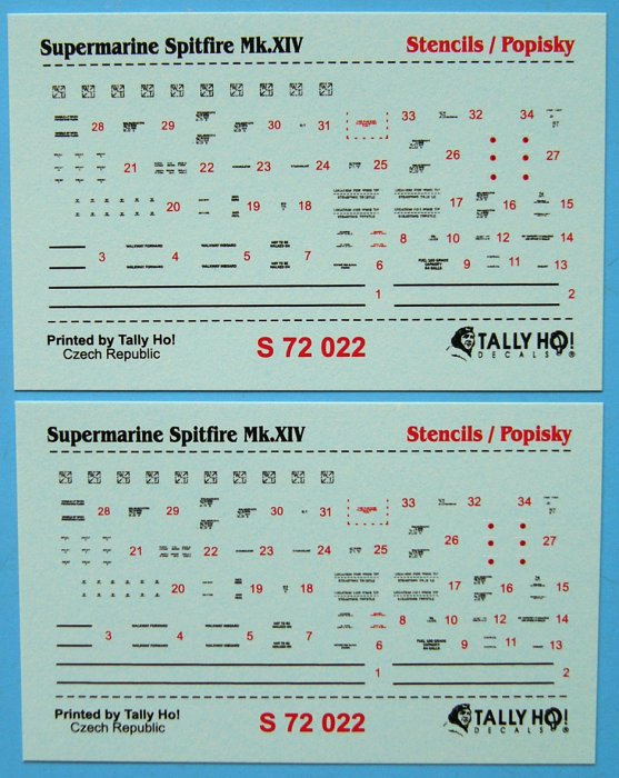 TALLY-HO - 1/72 Supermarine Spitfire Mk.XIV Stencils (2 pcs.)