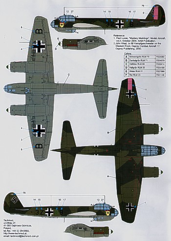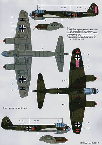 Techmod - 1/32 Junkers Ju-88A-1 (2) 3Z+BB 1 Stab/KG 77, 3Z+HN 5/KG 77. Both Laon-Athies, France Sept 1940 in RLM 70/71/65 with pink bands on tail
