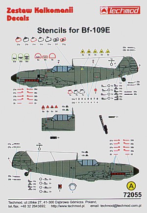 Techmod - 1/72 Messerschmitt Bf-109E Stencils for 2 aircraft