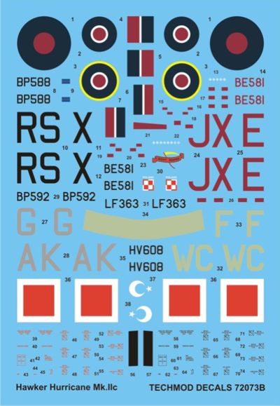 Techmod - 1/72 Hawker Hurricane Mk.IIc (4) BP592 AK-G 213 Sqn El Alamein 1942; HV608 Turkish Air Force 1942; BE581 JX-E 1 Sqn Flight Lt Kuttlewascher; BP588 RS-X 30 Sqn Ceylon 1942; LF363 WC-F 309 Polish Sqn