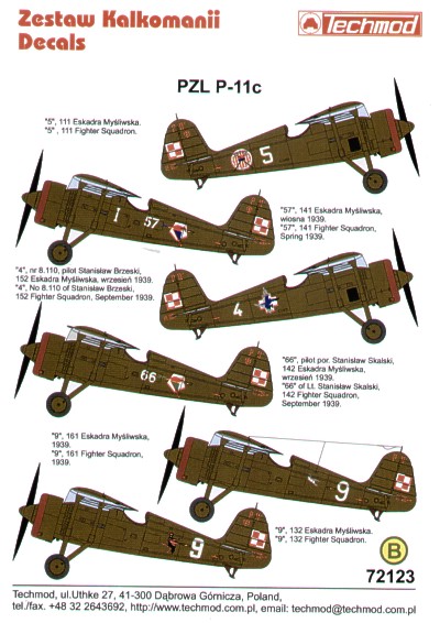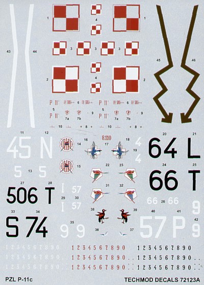 Techmod - 1/72 Re-printed! PZL P.11c (6)White 5 111 FS; White 57 141 FS; White 4 152FS; White 66 142FS Stanislaw Skalski; White 9 161 FS; White 9 132 FS.