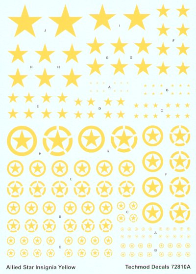 Techmod - 1/72 Yellow Allied ID Stars, 3 styles with or without outline circle in 9 sizes