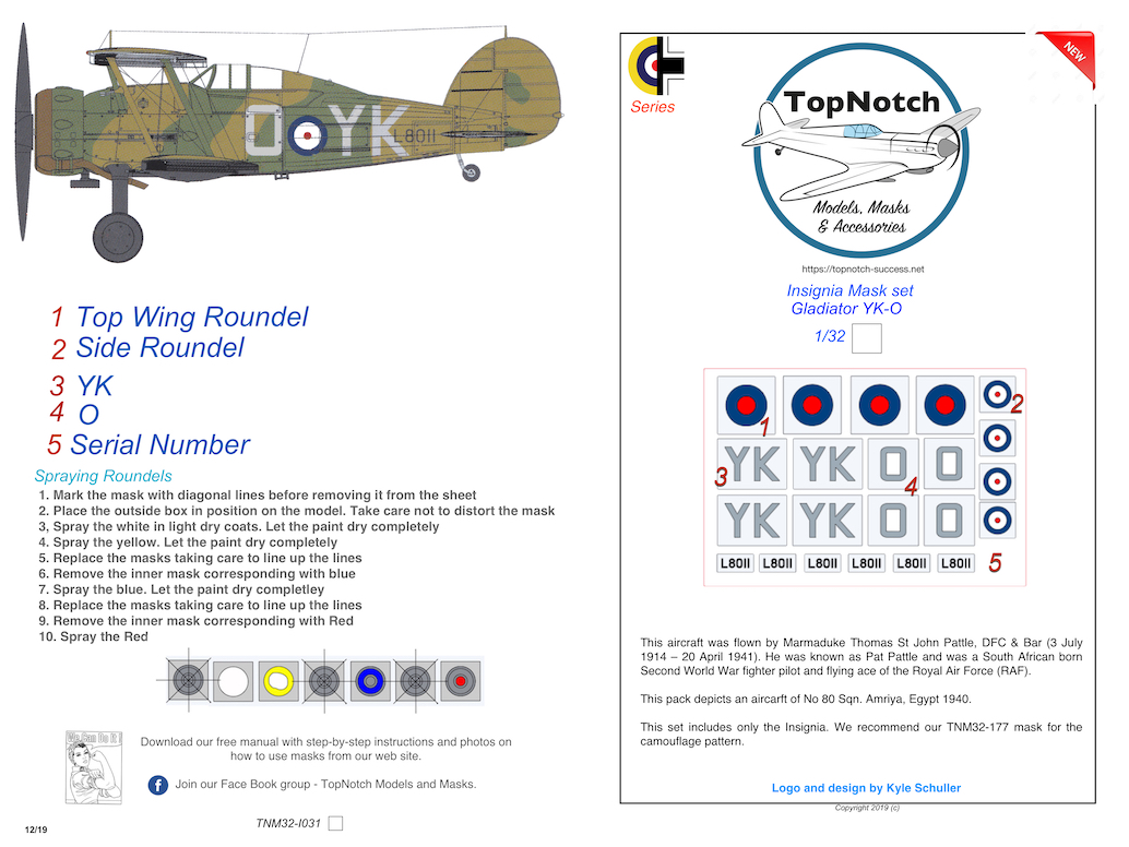 Top Notch - 1/32 Gloster Gladiator Mk.I Insignia YK-O (for Icm and Silver Wings kits)