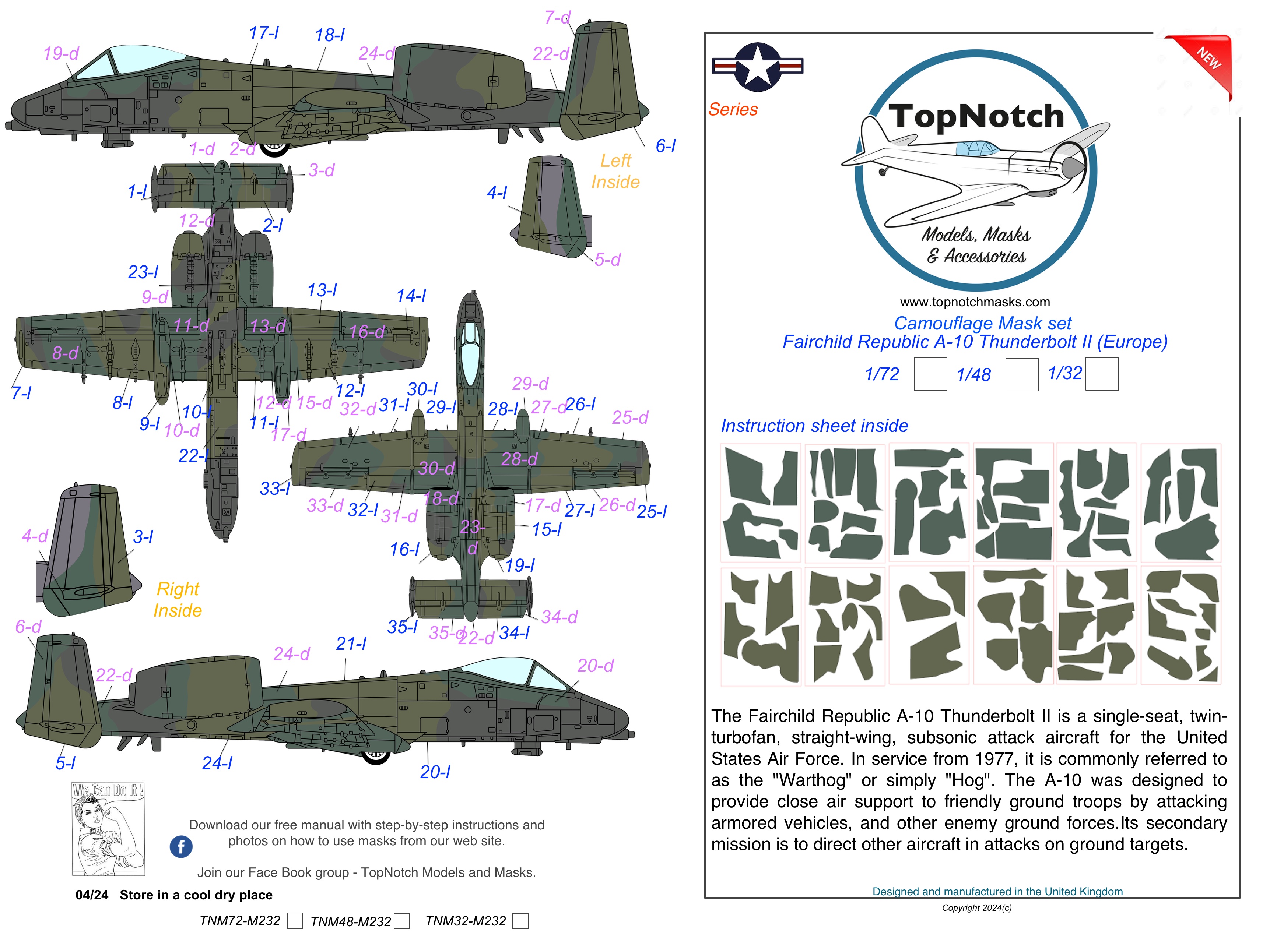 Top Notch - 1/32 Republic A-10 Thunderbolt II-Europe camouflage pattern paint mask for Trumpeter kits [A-10A A-10B A-10C