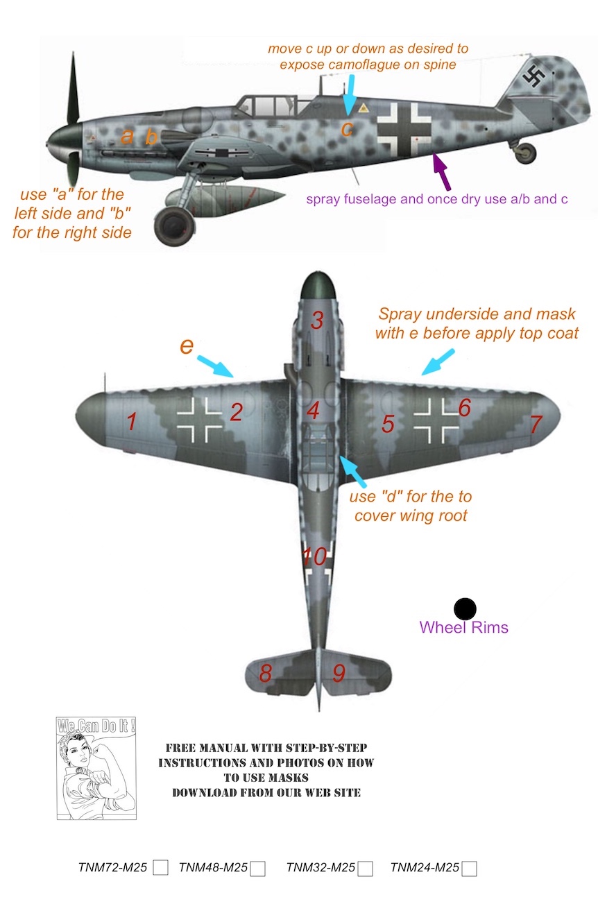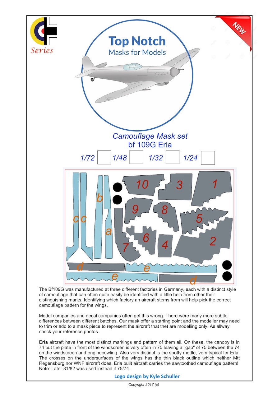 Top Notch - 1/72 Messerschmitt Bf-109G Erla Camouflage pattern paint Mask