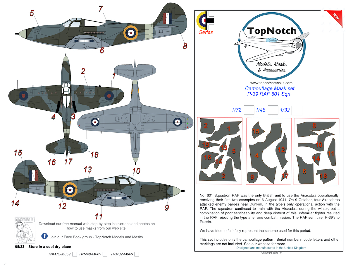 Top Notch - 1/72 Bell P-39/P-400 Airacobra 601 Sqn Raf camouflage pattern paint masks