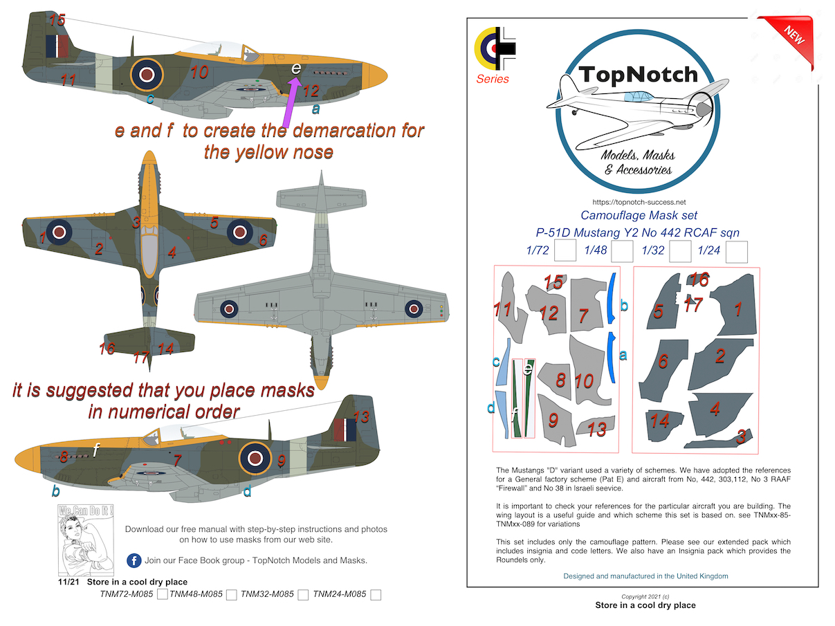 Top Notch - 1/72 North-American P-51D Mustang Y2 No 442 Rcaf sqn camouflage pattern paint mask (for Airfix, Hasegawa, Heller, Italeri, Revell and Tamiya kits)