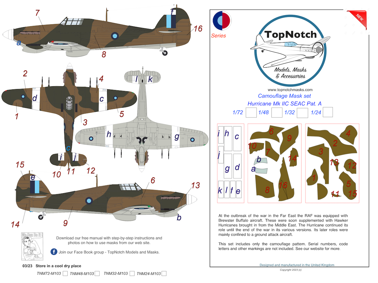 Top Notch - 1/72 Seac Hawker Hurricane Mk.IIc Pattern A Camouflage pattern paint masks