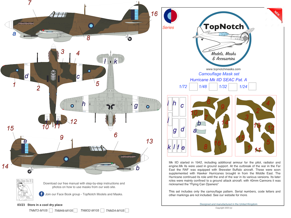 Top Notch - 1/72 Seac Hawker Hurricane Mk.IID Pattern A Camouflage pattern paint masks