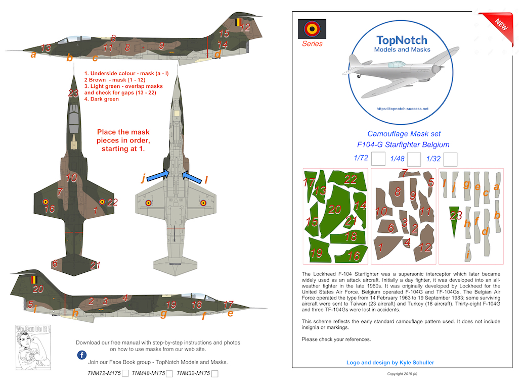 Top Notch - 1/72 Lockheed F-104G Starfighter Belgium (for Academy, Airfix, AMT/ERTL, Esci, Hasegawa, Heller, Pm Model and Revell kits)