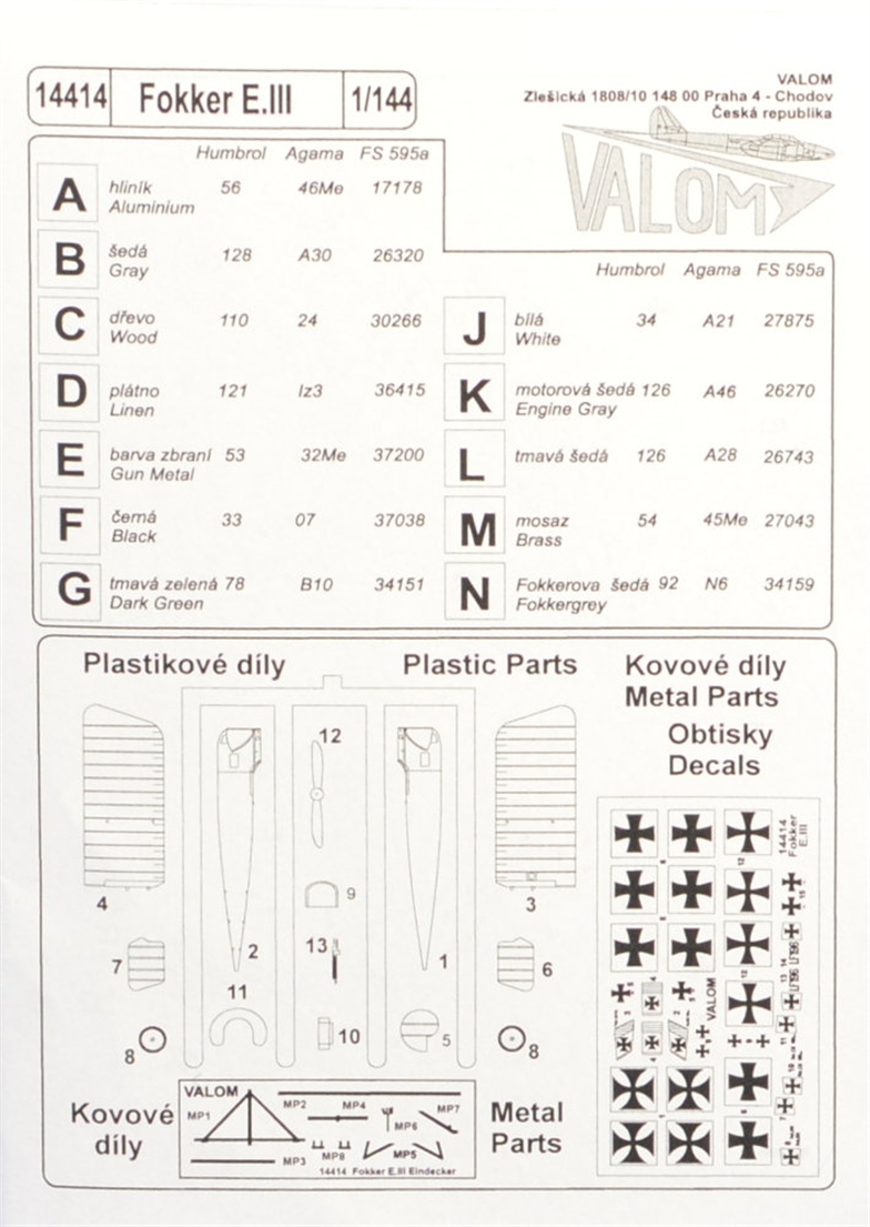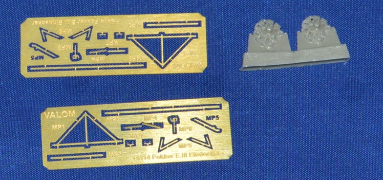 Valom - 1/144 Fokker E.III Eindecker (2in1) kit includes two identical sprues with parts, 2 x resin engines and two frets with p/e parts.