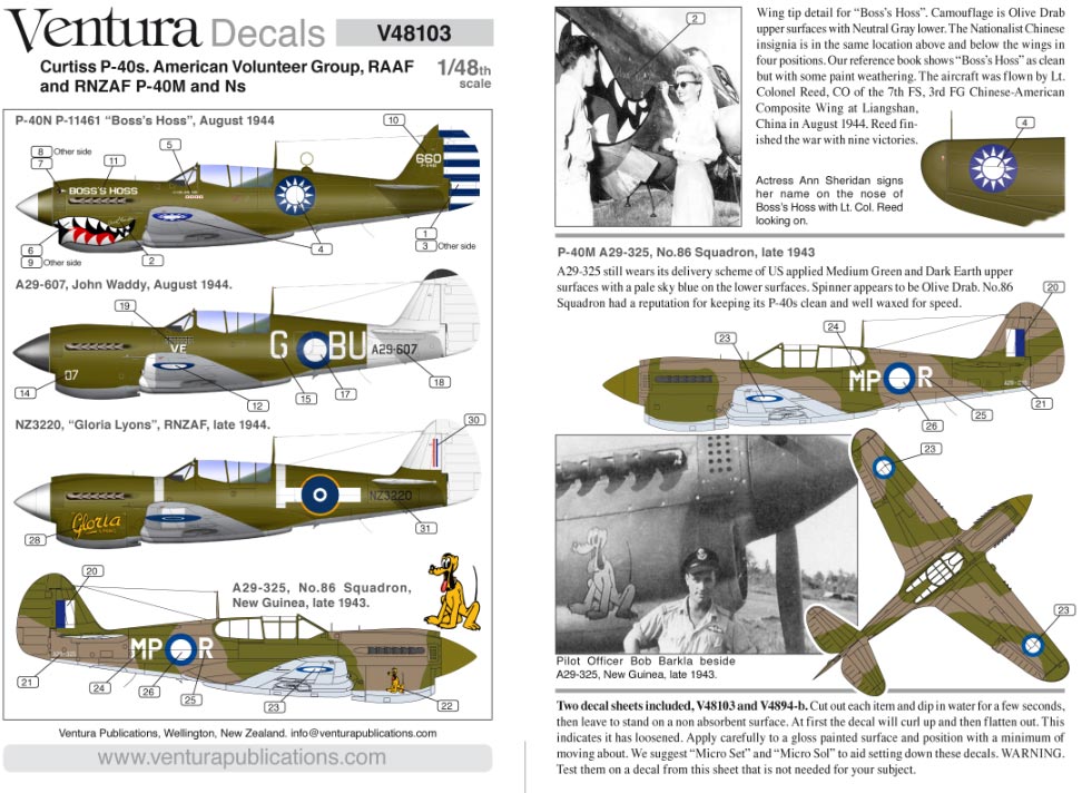 Ventura - 1/48 Curtiss P-40s. American Volunteer Group China, Raaf and Rnzaf P-40M and Ns. Five Options