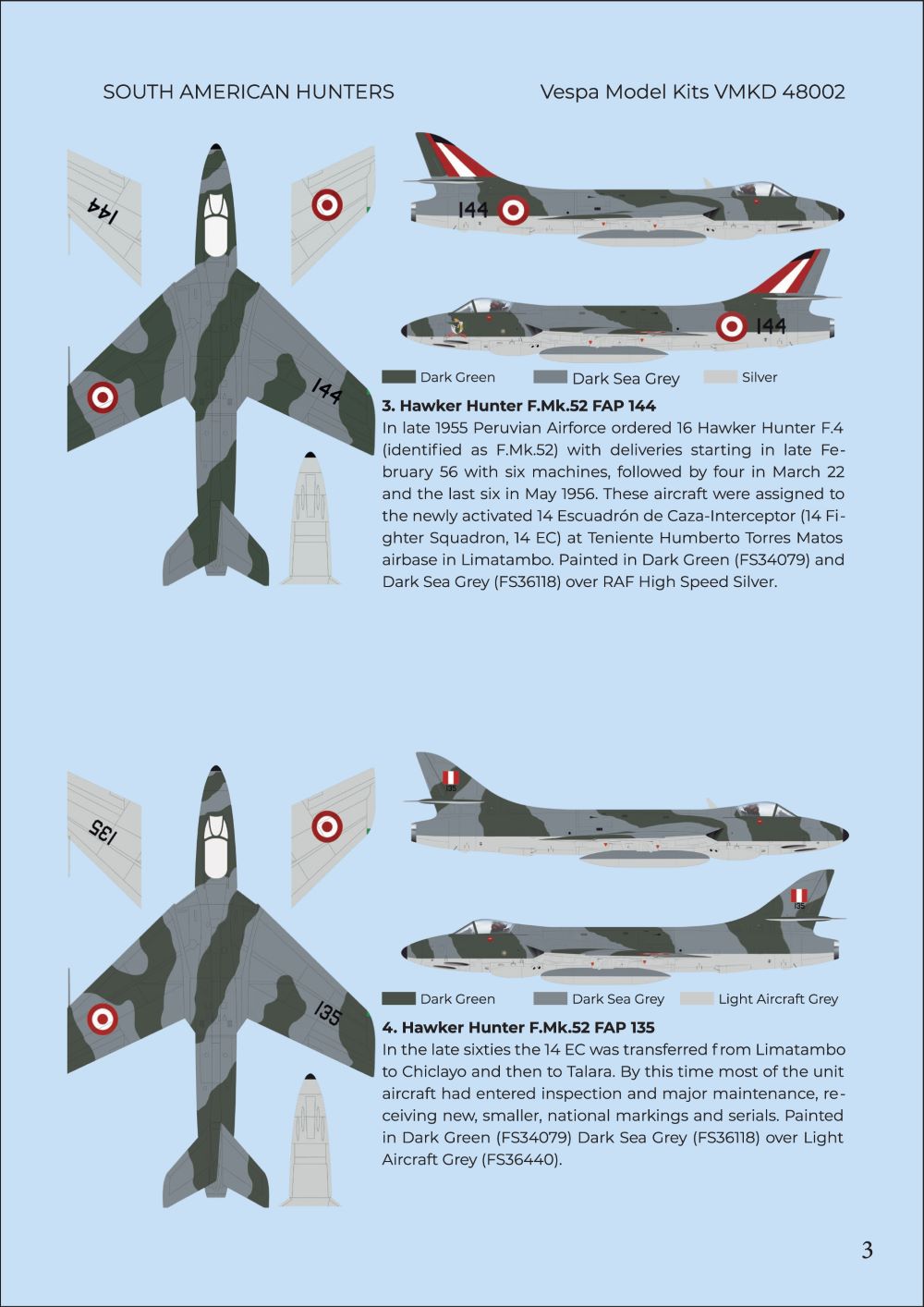 Vespa Models - 1/48 South American Hawker Hunters. T Mk.62/ F Mk.52/ F Mk.71/