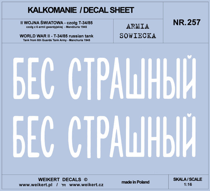 WEIKERT DECALS - 1/16 Russian tank T-34/85 6th Guards, Manchuria 45 decal