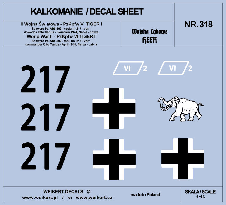 WEIKERT DECALS - 1/16 TIGER I Otto Carius 217 Schw. April 1944 decal