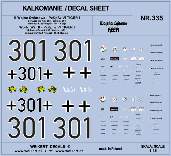 WEIKERT DECALS - 1/35 PzKpfw VI TIGER 301 Kurt Knispel, Russia decal