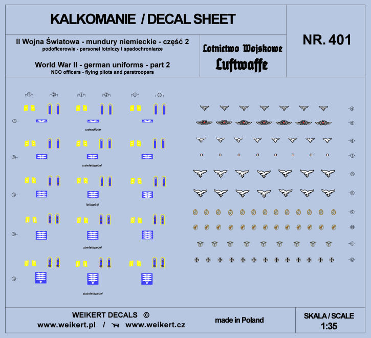 WEIKERT DECALS - 1/35 German Uniforms WWII Luftwaffe, part 2 decal