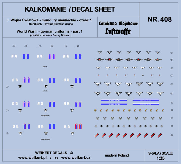 WEIKERT DECALS - 1/35 German Uniforms WWII Hermann Goring div. part 1 decal
