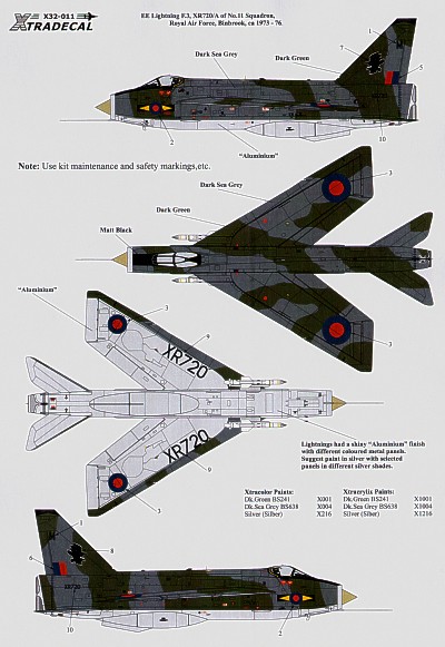 Xtradecal - 1/32 BAC/EE Lightning F.3 XR720/M 11 Sqn Raf Binbrook 1973-76. Green/Grey camouflage