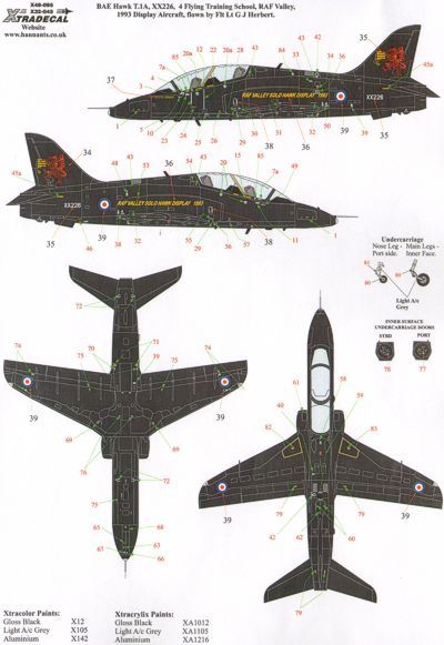 Xtradecal - 1/32 BAe Hawk T.1A (2) XX244 or XX245 2008(R) Squadron, 4 Fts Raf Valley 2011 Display Aircraft flown by Fl.Lt. Jules Fleming, XX226 4FTS Raf Valley 1993 Display Aircraft with Valley Dragon logo on fin.