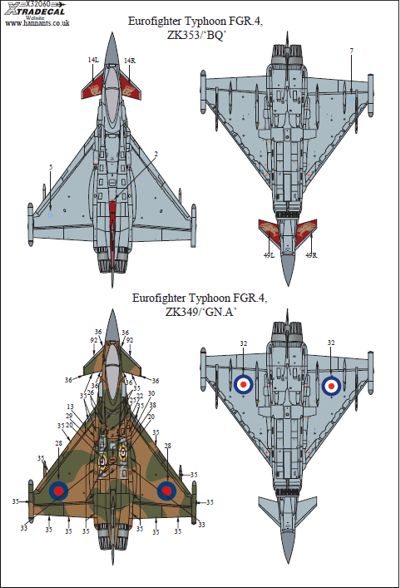 Xtradecal - 1/32 Eurofighter Typhoon FGR 4 29(F) Squadron 2015 Anniversary/Display (2) ZK349 GN-A 29(F) Squadron Flt Lt B. Westoby Brooks B of B 75th Anniversary. ZK353/BQ 29(F) Squadron 100th Anniversary Flt Lt Jonny Dowen