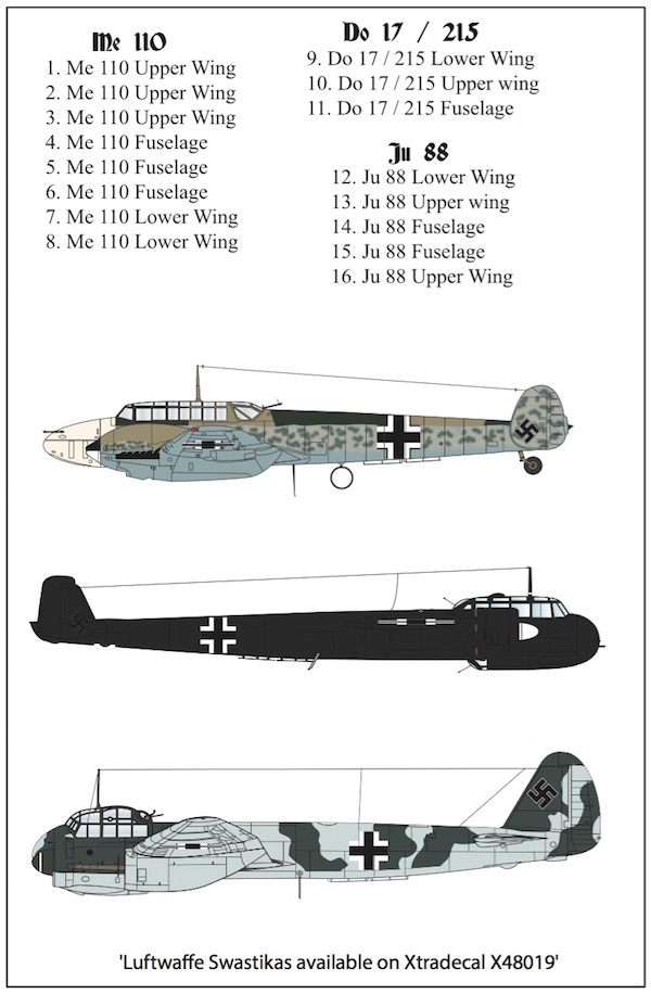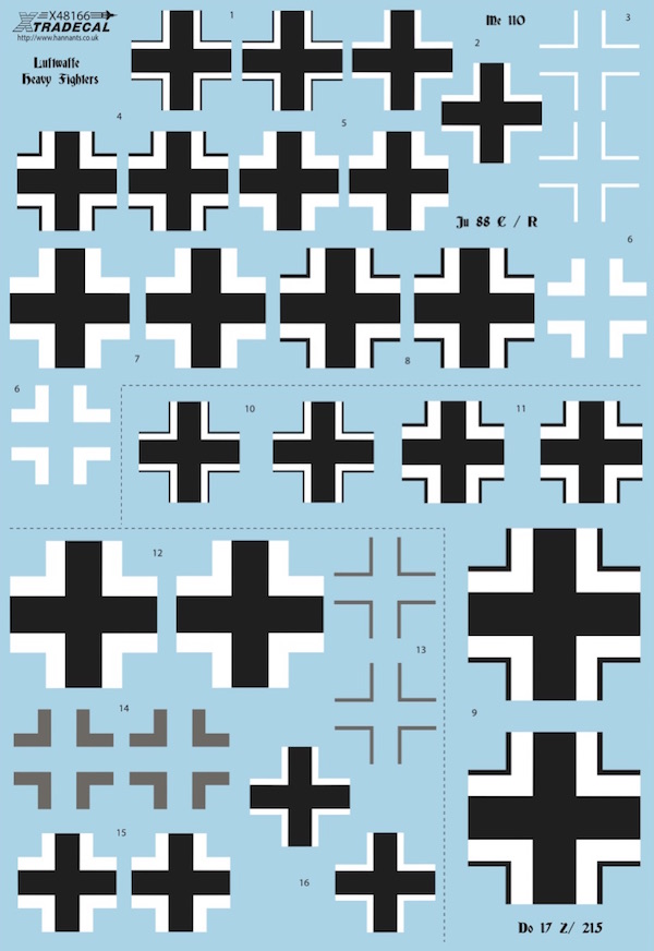 Xtradecal - 1/48 Luftwaffe Heavy Fighter Crosses for Junkers Ju 88, Dornier Do 17, Do 215 and Messerschmitt Me 110