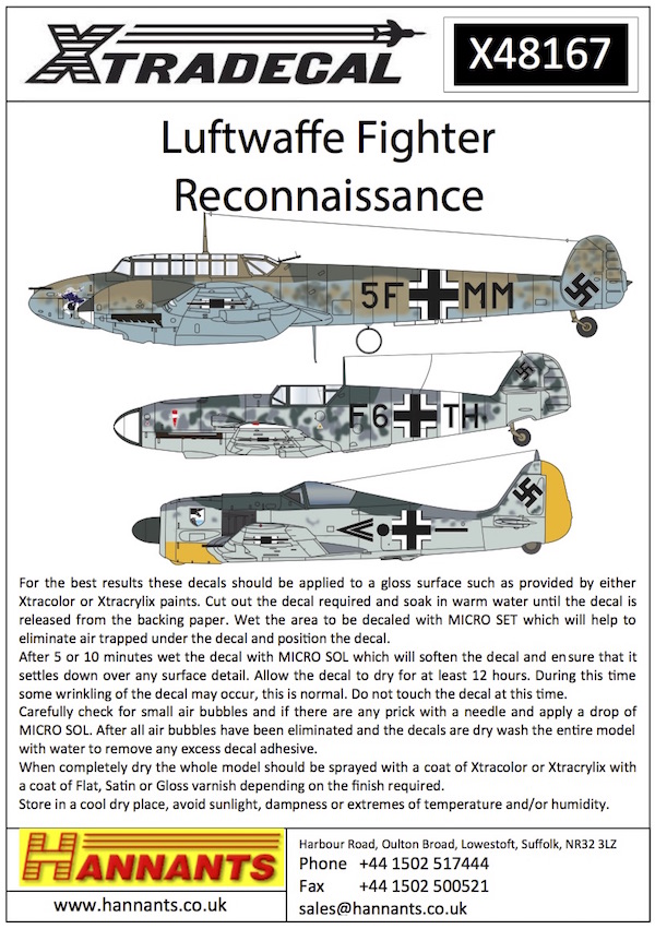 Xtradecal - 1/48 Luftwaffe Reconnaissance Fighters (10) Messerschmitt Bf 109F/G, Focke-Wulf 190A-4,