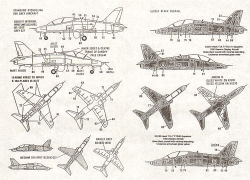 Xtradecal - 1/72 BAe Hawk T.1/T.1A (10) 63 Sqn. XX255 Matt Black/Yellow Arm/Axe, XX289/289 Black Fin, Arm/Axe on Yellow disc, XX278 Chivenor 50th Anniversary 1990, XX230 7FTS/63 Sqn Gloss Black 1992 display aircraft, 100 Sqn XX312 75th Anniversary 1992, XX247/CM, 151 Sqn XX322