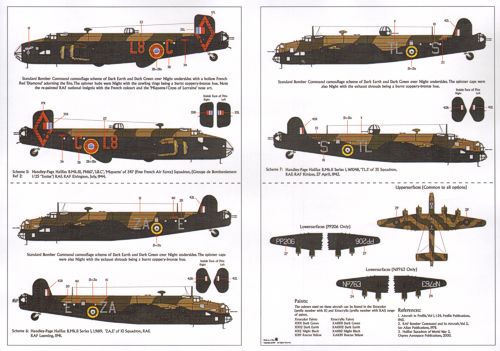 Xtradecal - 1/72 Handley-Page Halifax B.Mk.I/Mk.II and B.Mk.III (8) Mk.I/Mk.II L9619 ZA-E 10 Sqn RAF Leeming 1941, W1048 TL-S 35 Sqn RAF Linton-on-Ouse 1942, Mk.III MZ431 Z5-J 462(RAAF) Sqn Yellow/Black vertical stripes on fin RAF Driffield 1944, NA222 C8-O 640 Sqn Yellow/Black checks on fin RAF Laconfield 1944, NA233 NP-T 158 Sqn Yellow/Black diagonal stripes on fin RAF Lissett, PP206 DY-P RAF 102(Ceylon) Sqn, Free French Air Force NP763 H7-N 346(FFAF) Sqn Red diagonal pattern on fin RAF Elvington, PN167 L8-C 347(FFAF) Sqn 'Miquette' Red diamond on fin RAF Elvington,