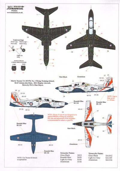 RAF Display Aircraft 1993 and 2011 (3) BAe Hawk T.1A XX244 or XX245 208(R) Sqn 4FTS 2011 display aircraft flown by Flt. Lt.Jules Fleming, XX226 1993 4FTS RAF Valley display aircraft flown by Flt.Lt G.J.Herbert, Short Tucano T.1 ZF378 1 FTS Linton-on-Ouse 2011 display aircraft flown by Flt. Lt Dan Hayes.