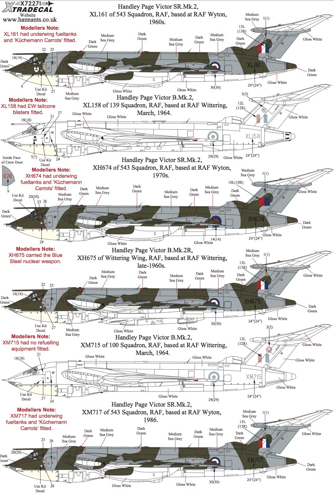 Xtradecal - 1/72 Handley-Page Victor B.2 (7) The aircraft on this sheet have been changed since first published. If you have ordered it please check that the Victor you want is still there.