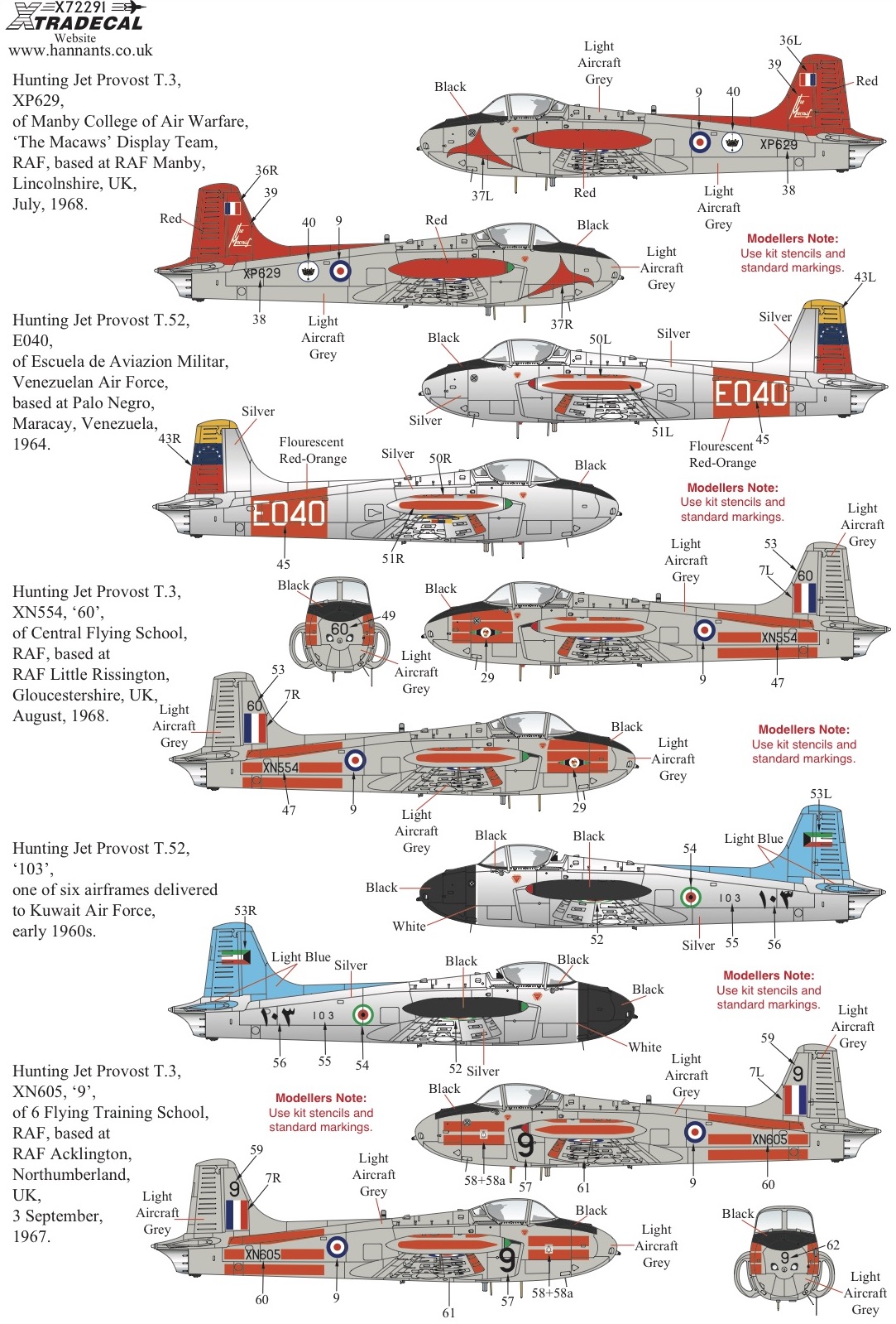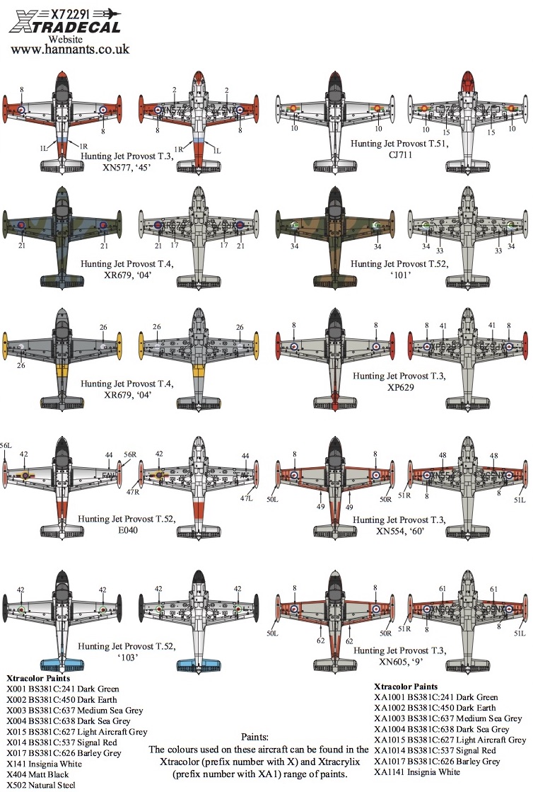 Xtradecal - 1/72 Hunting Jet Provost T.3/T.3a/T4/ T51/T52 (10)