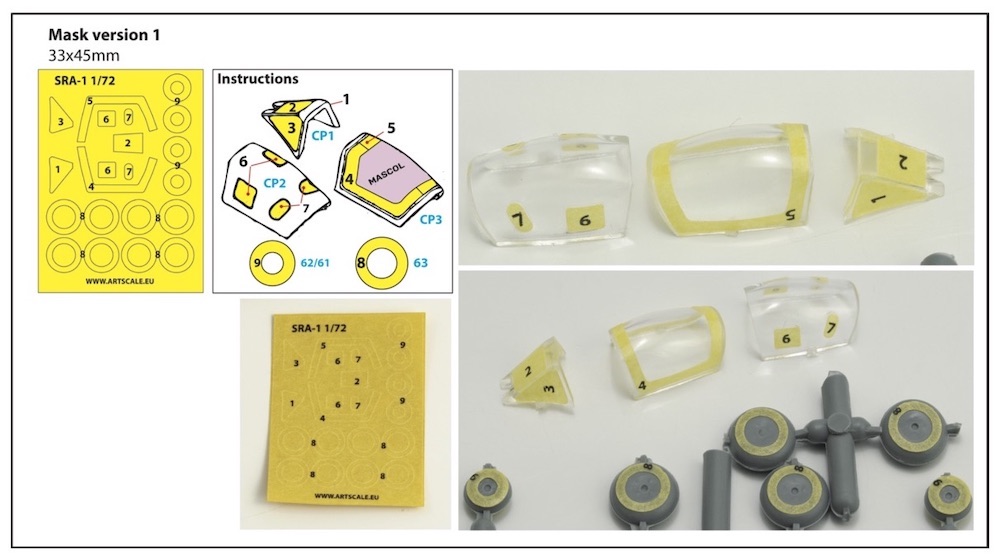 Includes paint masks by Art-Scale for the wheels, regular canopy and also the prototype canopy. The mask can be used on either canopy.