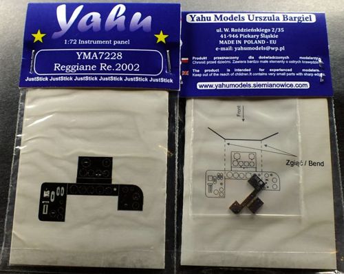 Yahu Models - 1/72 Reggiane Re.2002 high quality, colour printed, etched cockpit instrument panel (designed to be used with Sword kits) pre-assembled version