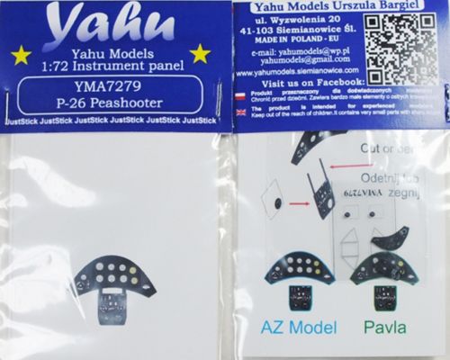 Yahu Models - 1/72 Boeing P-26A Peashooter Photoetched instrument panels. Coloured. Ready to fit in a model (JustStick) (for AZ Models and Pavla kits)