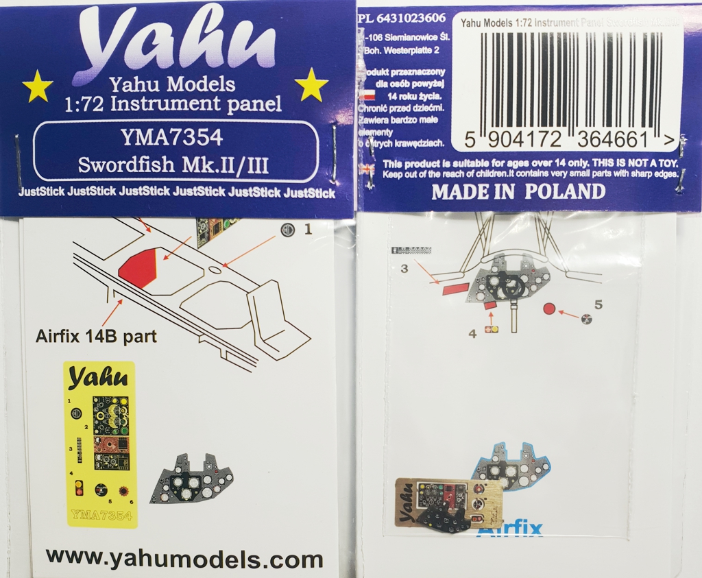 Yahu Models - 1/72 Fairey Swordfish Mk.II/Mk.III pre-painted instrument panel for Airfix