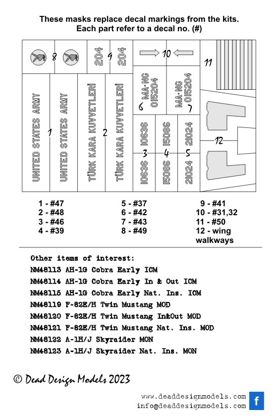 Dead Design Models - 1/48 Bell AH-1Q/S Cobra national insignia for Special Hobby kits masks