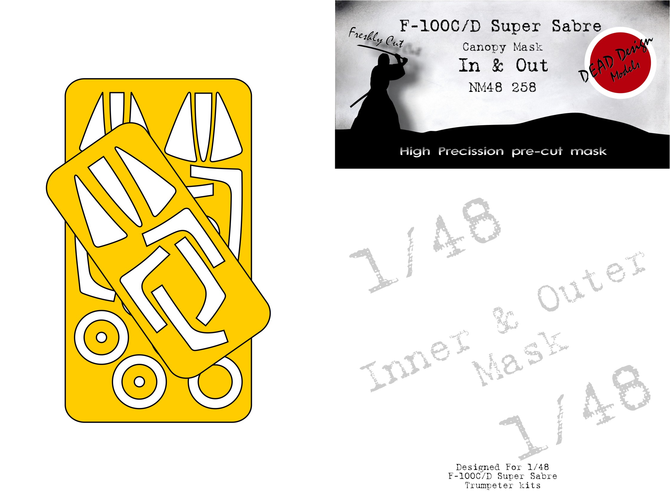 Dead Design Models - 1/48 North-American F-100C/F-100D Super Sabre canopy frame paint mask inside and outsidemask for Trumpeter