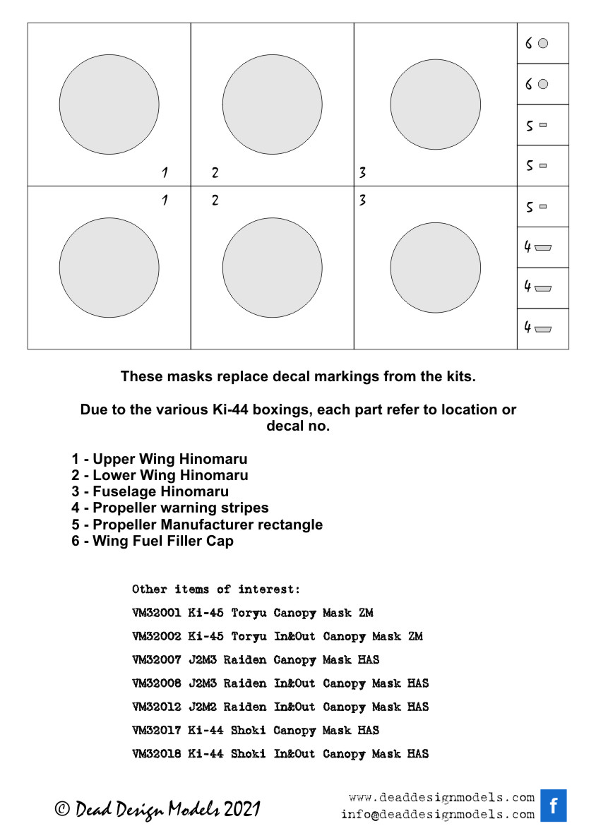 Dead Design Models - 1/32 Nakajima Ki-44 national insignias without white outline (for Hasegawa kits)