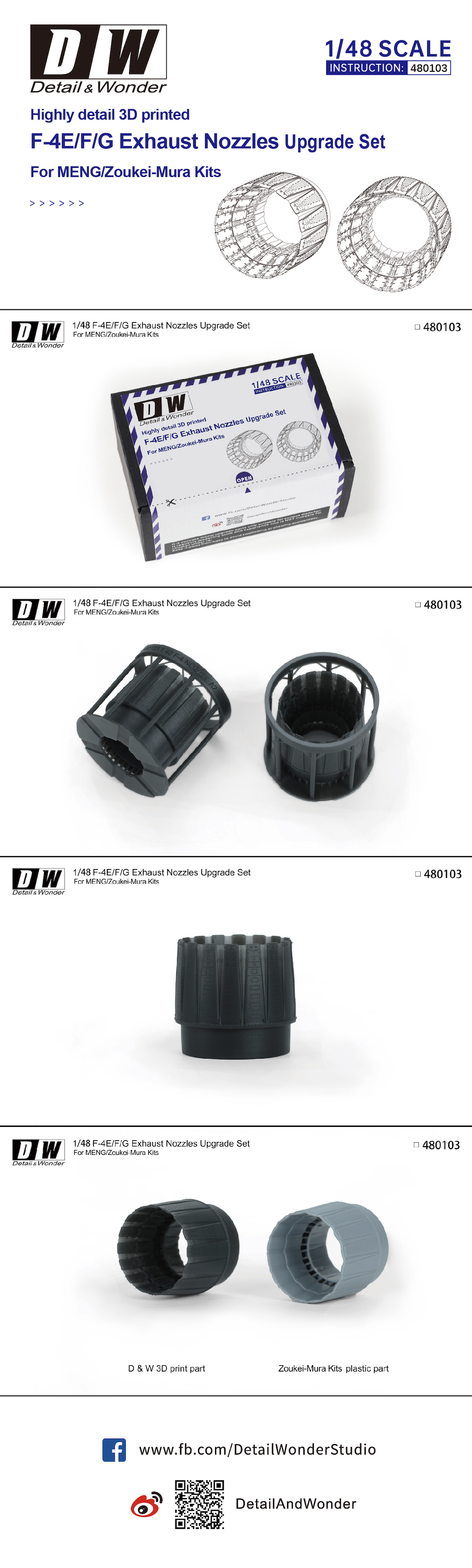 Detail & Wonder - 1/48 late McDonnell F-4E/F-4F Exhaust Nozzleslbr>version for Meng Model and ZOUKEI-MURA
