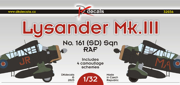 DK Decals - 1/32 Westland Lysander Mk.III No.161(SD) Sq. RAF