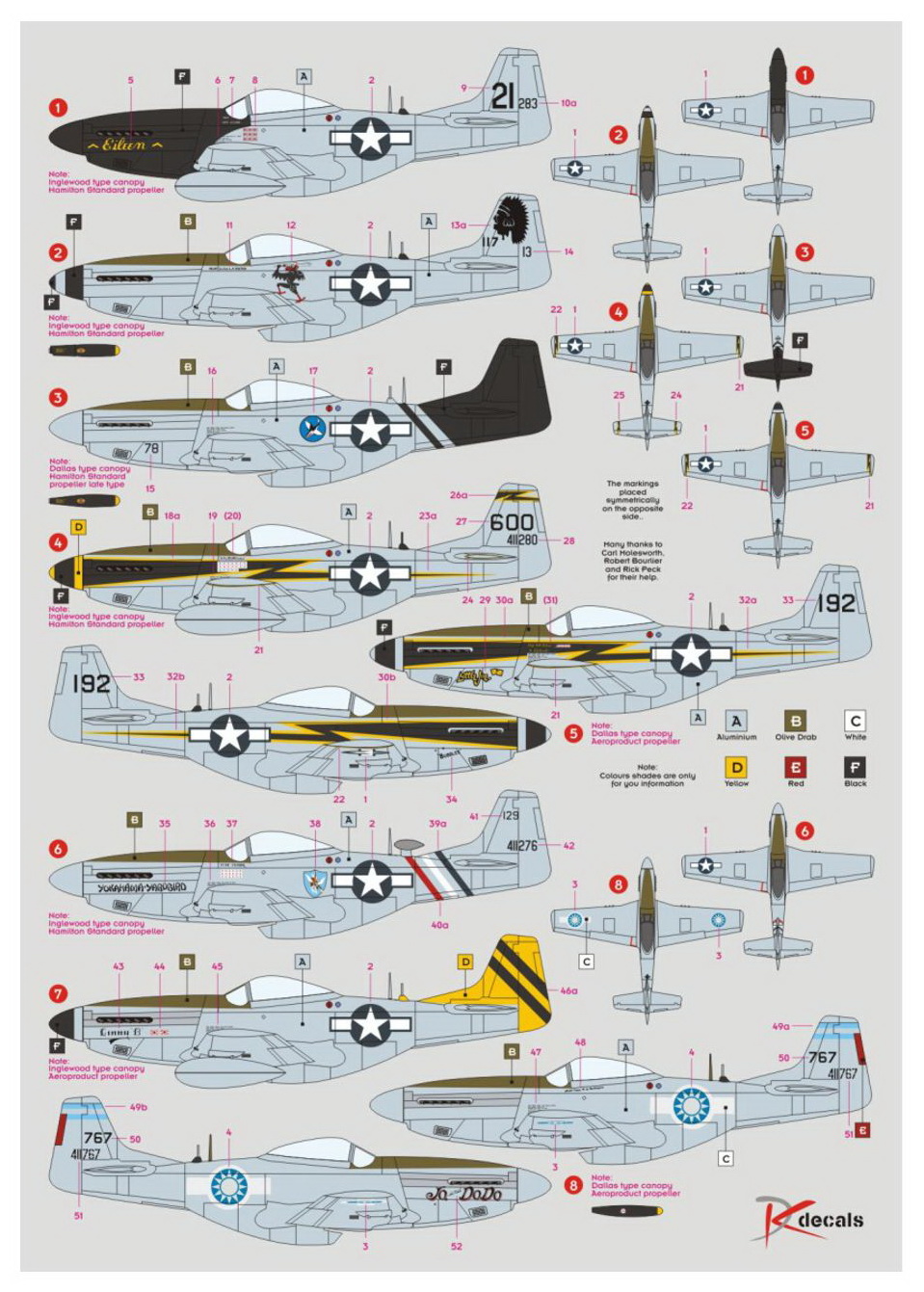 DK Decals - 1/48 North-American P-51D/K Mustang 14th Af and Cacw