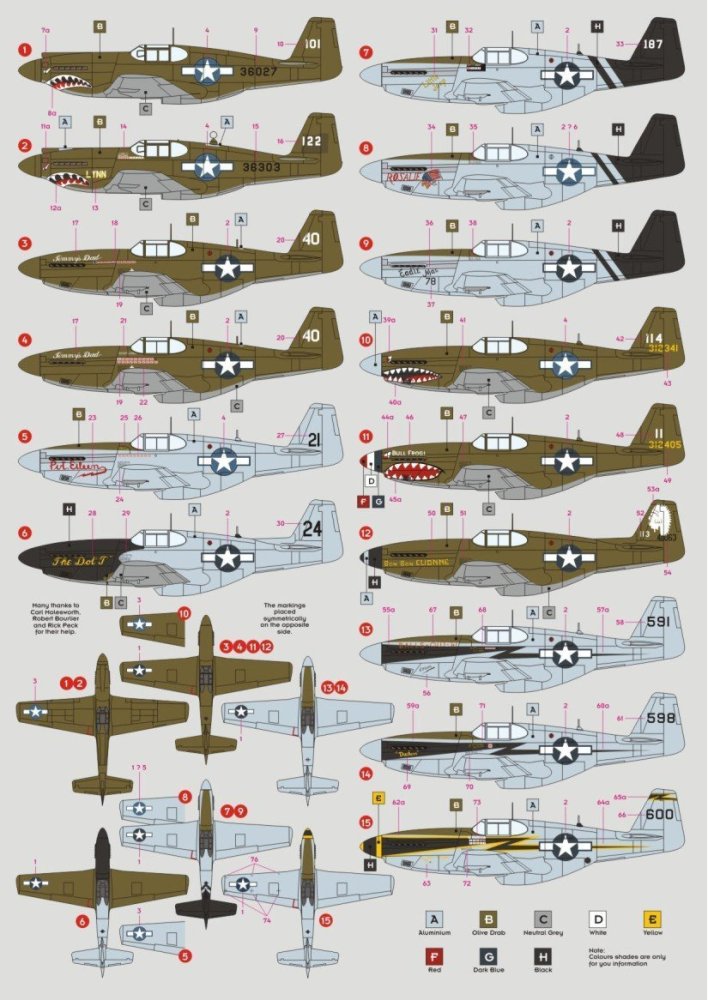 DK DECALS - 1/72 23rd Fighter Group 1944-45, part 1 (15x camo)