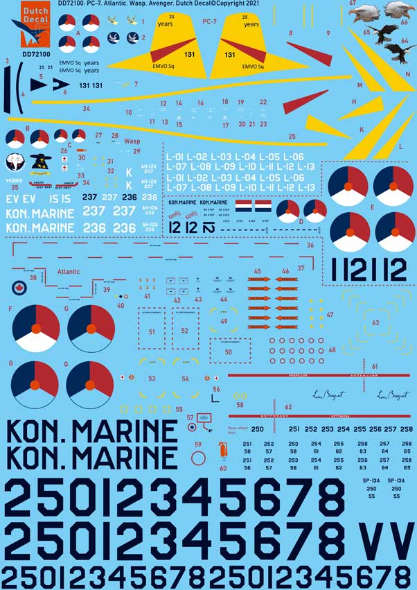 Dutch Decal - 1/72 Breguet Atlantic MLD, Pilatus PC-7 KLu/Royal Neth.AF Wasp and Grumman Avenger.