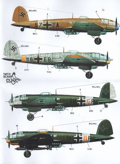 Eagle Cal - 1/48 Heinkel He 111H. S7+ZA - He 111H - Stab/StG 3 1H+BP - He 111H-6 - 6./KG 26 1H+GP - He 111H-6 - 6./KG 26 1G+ER - He 111H-6 - 7./KG 27