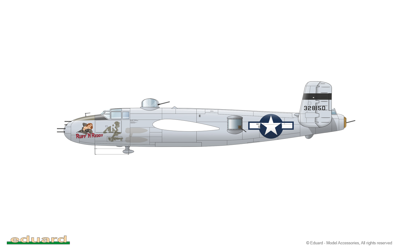 Eduard - GUNN's Bunny 1/72 (first delivered 04-08-2022) Limited edition kit of US WWII medium bomber North-American B-25J Mitchell with solid nose in 1/72 scale. Kit presents machines from the Pacific and China Burma India Theater. Plastic parts:Hasegawa marking options: 10 decals: Eduard Pe parts, mask, resin wheels