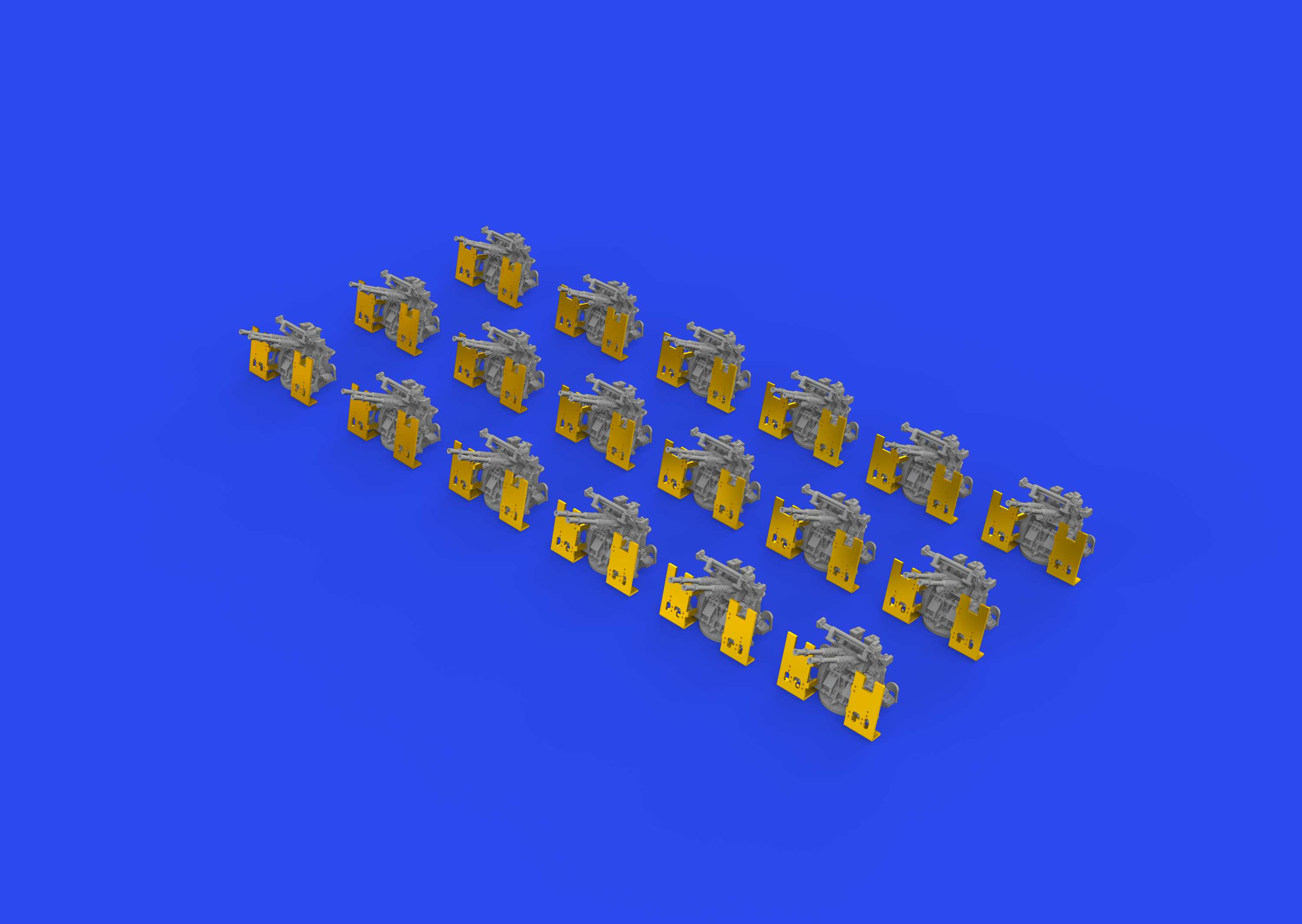 Brassin set double Mounted 25mm Aa gun for Ijn vessels in 1/350 scale. Set consists of 18 guns. Made by direct 3D printing. Easy to assemble, replaces plastic parts.