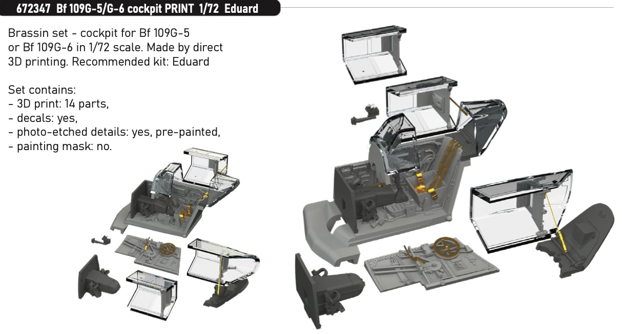 Brassin 1/72 Bf 109G-5/G-6 cockpit PRINT EDU