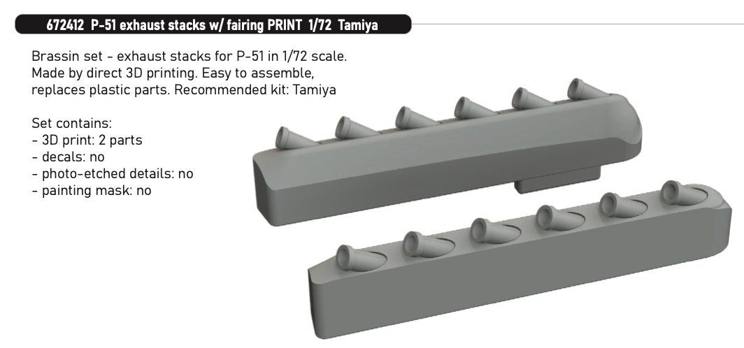 Brassin 1/72 P-51 exhaust stacks with fairing